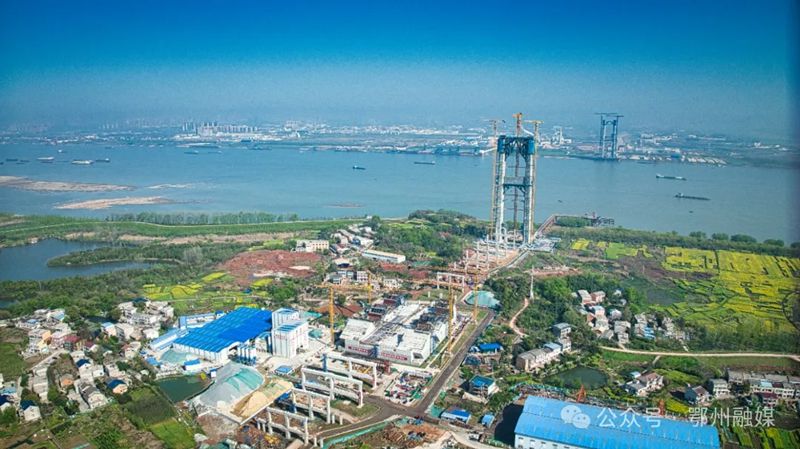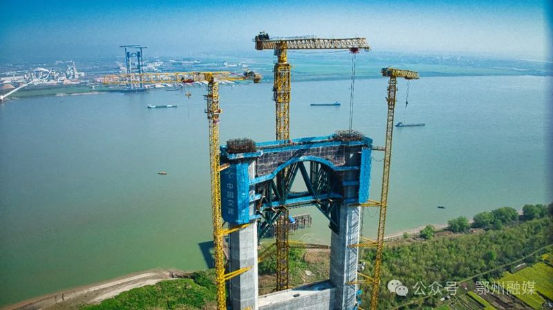 “中交二航局承建大桥南岸鄂州侧工程全长8.845公里,截至目前,主墩锚锭已完成 95%,主塔力争在4月底完成封顶。”该项目部书记喻林峰介绍。