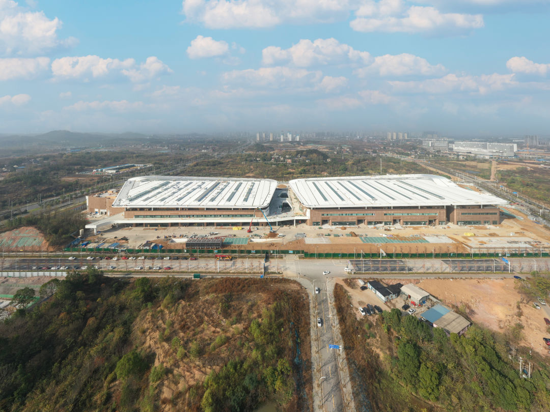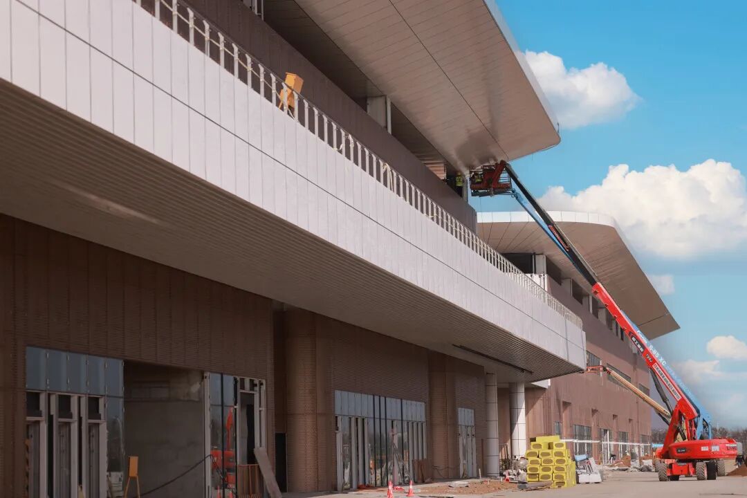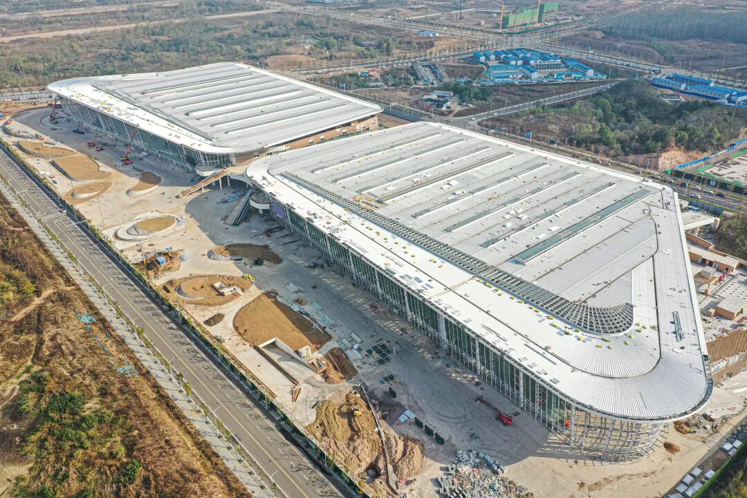 近日 鄂州市临空经济区 有一只白色“蝴蝶” 已然成型 它位于临空大道旁 是鄂州市未来最靓丽的名片之一 鄂州市会展中心 美丽蝴蝶振翅欲飞 位于临空经济区临空大道旁,正在建设中的鄂州市会展中心每天都不一样。如果从高空俯瞰,整个场馆就如展开双翅的蝴蝶,已然成型。 这个设计灵感来自鄂州特色雕花剪纸,不仅塑造出舒展的视觉效果,更喻意着鄂州城市正在发生的“蝶变”。 “蝴蝶”的双翅,对应着南北两馆,24米的层高,让走近它的人只能仰望。 在南馆展厅,只见头顶是45米跨度的钢桁架,视野开阔,大厅内却只有两根承重柱。9个曲臂车林立其间,登高车来回穿梭,带着安全帽的施工人员正在高空作业。 “目前工程已经到收尾阶段,他们在做天窗收口收边的工作。”中建三局鄂州市会展中心项目总工任佳说。 展厅地面留有沟槽,可以通管线,未来参展方可以就地取电。 整个工程外观已经基本完成,只剩少量异形的檐口,因为需要单独开模,所以还需要一点时间。外立面除了玻璃,还铺设穿孔铝板和灯珠,让外墙可以成为巨大的“显示屏”,夜景中可以形成不同图案。 椭圆形的科技馆、可容纳1000人的会议中心,每个独立单元都大气磅礴。高峰期有近千人同时作业,施工支架最大高度9.35m,最大吊重为8.5t,这些都给施工造成一定难度。 “在主体工程施工阶段,共有6台塔吊,其中5台存在交叉作业,‘群塔作业’肯定存在相邻塔机碰撞风险,我们编制专项施工方案,让塔吊如同指挥家的双手那样高低错位工作,确保互相不碰撞。”任佳说。 将一湖山水框入“展示窗” 会展中心的设计理念是打造“展会商娱综合体”,建成一个以展览为主,科技馆、会议中心并行的综合性展览中心。 项目地址位于临空大道北侧,总用地面积151141 平方米,建筑面积为116517.30平方米,其中地上二层,地下一层。 除了展厅外,南馆还有科技馆,北馆有会议中心,中间布置有下沉庭院,朝向规划的中央公园,形成会展中心中轴线。 人流、车流分区明确,建筑周边地面以铺装为主,以满足室外临时布展及人流疏散的要求。 通过建筑二层的树桥连廊,可以到达建筑内部各个区域,同时,树桥还预留有接口,未来可将步行系统连到星级酒店。 整座会展中心面山对景、映山造景,充分诠释着空间轮廓穿插错落、显隐进退的韵律之美。 城市庭院、下沉景观、立体绿化和都市广场融为一体,延续城市绿色。更将一湖山水框入“展示窗”,呈现出“敞怀纳接,湖山相迎”的景观格局。 在功能上,会展中心还注重多功能结合,为观众提供更好的观展体验和人性化的服务。展馆与展馆之间均采用“灵活分隔”的手段,可分可合的展馆既可用于小型展览,又为大型展览提供了更大的场地。 人行架空平台的引入,将更多人流引入展馆核心地带,配合局部商业设施,为会展中心提供24小时人气。 会展与临空“珠联璧合” 会展业作为高端服务业,是临空产业的重要组成部分,从国内外知名会展城市的发展经验可以看到,会展业的发展与航空运输的发展密切相关。 两者都是联动性非常强的行业,对一个城市、地区乃至一个国家的经济都有着非常强的带动作用。都能极大地影响商贸、旅游、物流、餐饮和酒店等相关产业的发展,具有强大的经济拉动效应。 因为,无论是参展者的旅行,还是展览物品的物流往返,都必须借助方便快捷的交通运输来实现,而民航常常会成为首选交通方式。 有些高端企业会选在临空经济区的会展中心旁,这样可以提高感知行业变化的速度,并快速做出反应。而从科技发展史来看,许多划时代的发明创造,如电话机、留声机、蒸汽火车、电视机等都是在展览会上首先进行展示和推广的。 这样看来,会展中心设在临空经济区,简直是珠联璧合的搭配。 鄂州市会展中心致力于打造独具特色、服务最优、产业聚集的国际会展产业集群,优化生产力布局,实现会展贸易资源的有序和自由流动、高效配置,不仅有利于鄂州塑造良好的城市形象、获取更多的商机,更能通过有形方式促进城市无形资产的积累。 据任佳介绍,目前会展中心主体结构、砌体、钢结构、金属屋面、室外道路硬化及室外管网施工均全部完成,计划农历今年年底完工。 项目建成后 将形成 会展经济与临空经济 互相促进、协同发展的格局 共同成为区域经济发展的增长极 这只美丽的“蝴蝶” 已振翅待飞