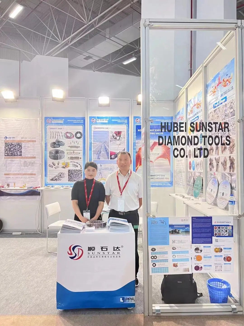26日,来自湖北圣佰锐金刚石工具有限公司、鄂州市劲龙金刚石工具有限公司、湖北顺石达金刚石工具有限公司以及鄂州市百利丰金刚石工具科技有限公司的8名工作人员带着300余种产品参加2023年土耳其国际石材展及技术展览会。