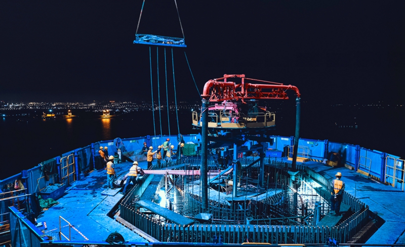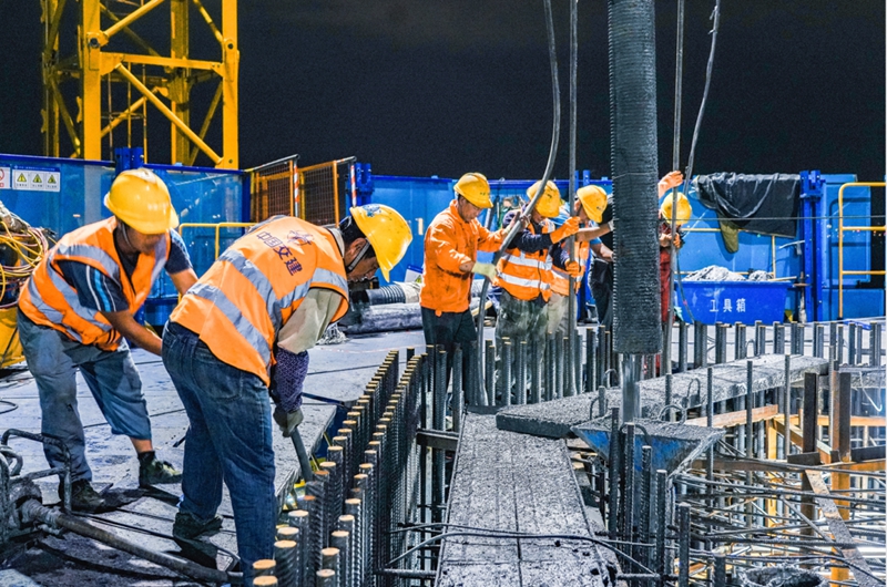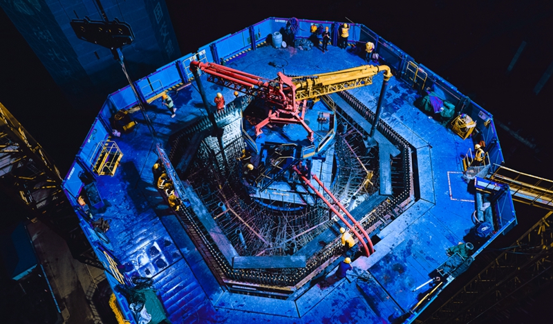此次浇筑为燕矶长江大桥南岸主塔上游侧第19段,长度6米,采用C60标号混凝土,共计浇筑493立方米,历时8个小时。首节塔柱于去年11月4日开始施工,施工过程中,项目团队科学谋划、工艺细化,采用中交二航局最新自主研发的一体化智能筑塔机施工,通过“自动化减人,机械化换人”大大提高了施工效率,全封闭的施工环境和塔底钢筋部品拼装也有效降低了施工安全风险,确保大桥阶段性建设目标实现。