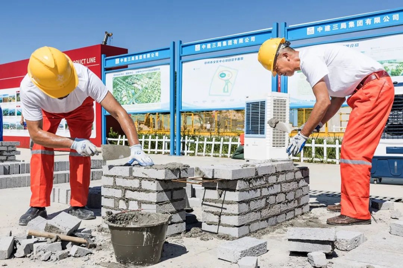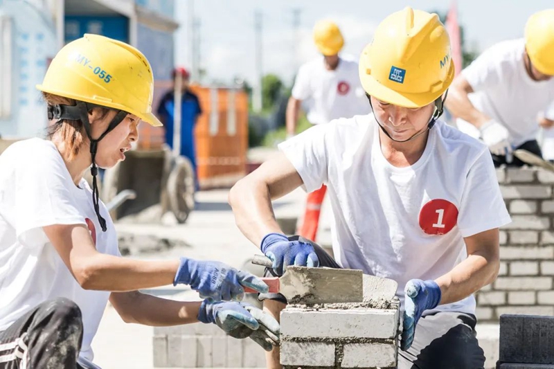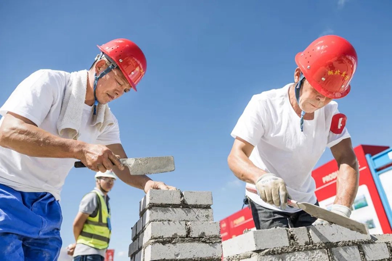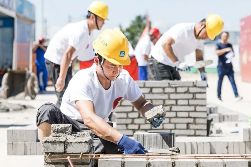 在砌筑比赛现场,来自临空经济区各在建项目的8支代表队现场比武,选手们仔细测量、切割、砌砖,在追求速度的同时又力求完美,避免一分一毫的误差。