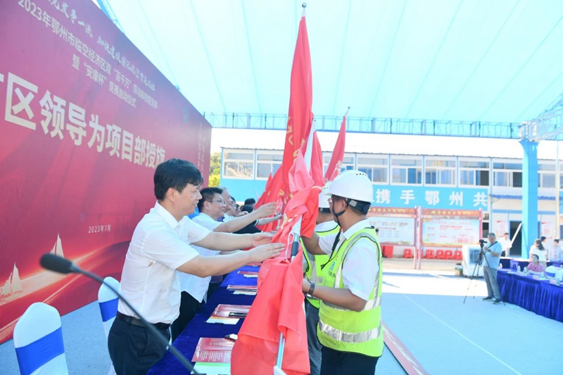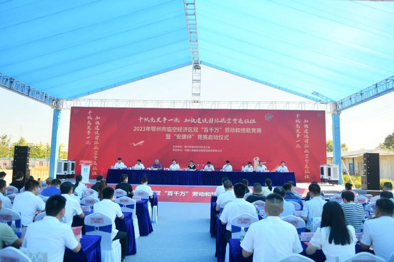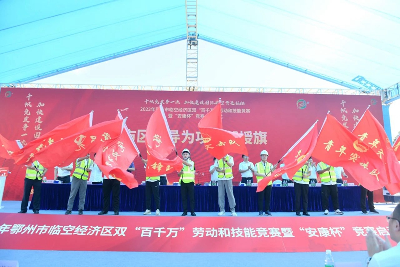7月28日,2023年临空经济区双“百千万”劳动和技能竞赛暨“安康杯”竞赛在中建三局基建投公司鄂州市文化中心项目举行,拉开了临空经济区开展劳动技能竞赛的序幕,通过竞赛营造“以赛促进、以进促优”的劳动氛围,为加快推动临空经济区高质量发展搭建优势平台。