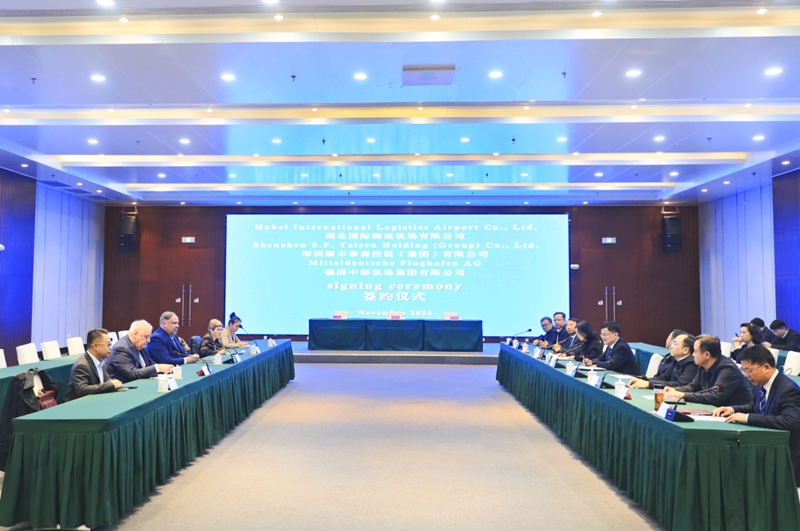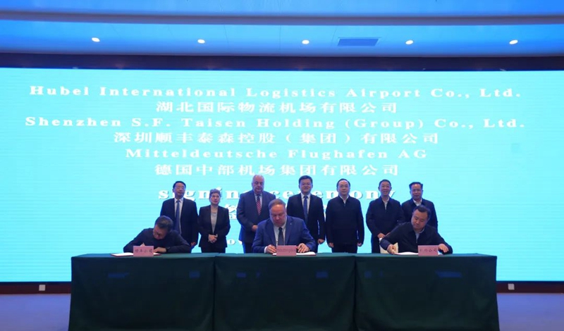 11月20日,在鄂州市领导、德国萨克森州经济促进会相关主管的见证下,德国中部机场集团有限公司代表与湖北国际物流机场有限公司、顺丰速运有限公司代表签署友好合作备忘录,三方就未来务实合作进行会谈。
