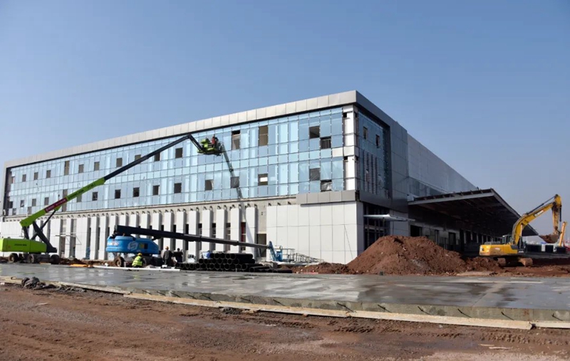 “为保障月底达到竣工验收条件,项目部成立工程进度协调管理小组,合理安排施工工序、研判抢抓黄金窗口期、上足人材机、开启24小时‘三班倒’作业模式。目前,项目整体施工人员400余人,现场加紧对吊顶、灯具、瓷砖、消防、侧窗、门窗、幕墙玻璃等施工工作,室内精装修完成90%以上。室外雨污水管、强弱电管群、给水管道安装、幕墙扣板、围网、混凝土地坪浇筑正同步施工中。”中国一冶鄂州保税区项目常务副经理夏博说。