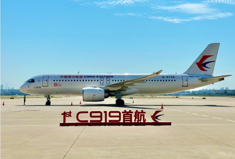 图:2023年5月28日,国产大型客机C919开启全球首次商业载客飞行。中国东方航空使用中国商飞全球首架交付的C919大型客机,执行MU9191航班,从上海虹桥机场飞往北京首都机场,开启了国产大飞机C919的全球首次商业载客飞行。该航班标志着C919的“研发、制造、取证、投运”的全面贯通,中国民航商业运营国产大飞机正式“起步”,中国大飞机的“空中体验”正式走进广大消费者。