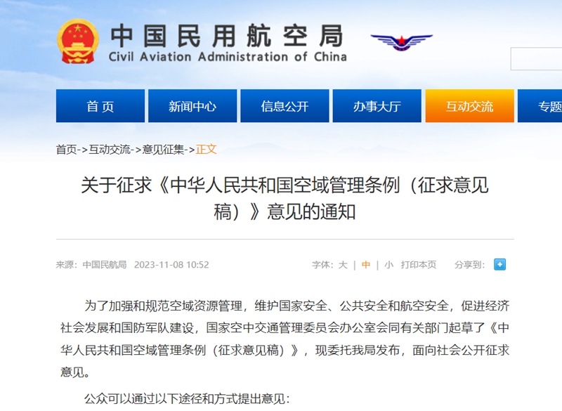 03、《中华人民共和国空域管理条例(征求意见稿)》发布