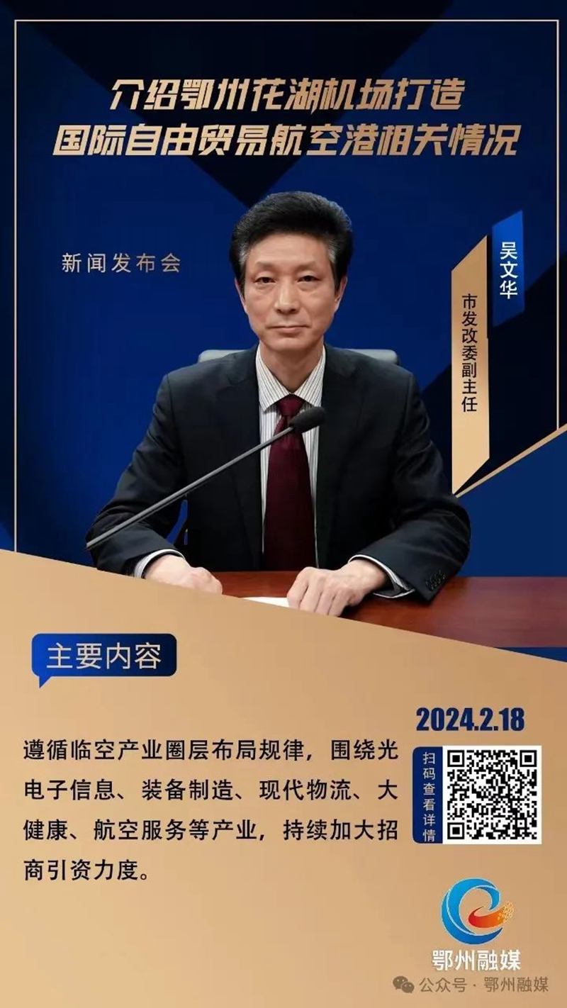 鄂州大力发展临空经济,遵循临空产业圈层布局规律,围绕光电子信息、装备制造、现代物流、大健康、航空服务等产业,持续加大招商引资力度。依托花湖机场加快发展三大重点产业:航空运输业、临空制造业、现代服务业。